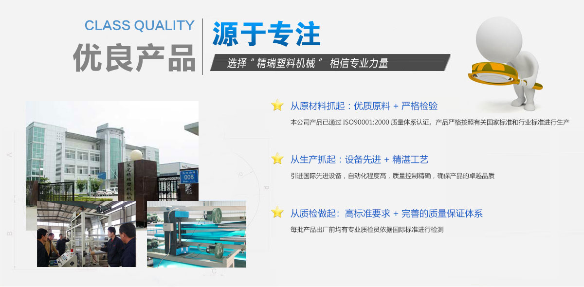 山東精瑞塑料機(jī)械有限公司是集研發(fā)、設(shè)計(jì)和生產(chǎn)管、膜、絲、帶、板、中空和電線電纜等塑料機(jī)械及塑料模具于一體的專業(yè)公司。公司匯集了一批專業(yè)的設(shè)計(jì)人員和研發(fā)人才,熟練的操作工人和經(jīng)驗(yàn)豐富的安裝調(diào)試人員以及專業(yè)化的售后服務(wù)隊(duì)伍,保證了產(chǎn)品的高品質(zhì)、高性能,實(shí)現(xiàn)了快捷高效的售后服務(wù)。公司不斷研發(fā)新產(chǎn)品,產(chǎn)品暢銷全國(guó)二十幾個(gè)省、市、自治區(qū),并出口俄羅斯、敘利亞、新加坡、非洲和東南亞等地區(qū),公司擁有自營(yíng)進(jìn)出口權(quán)。